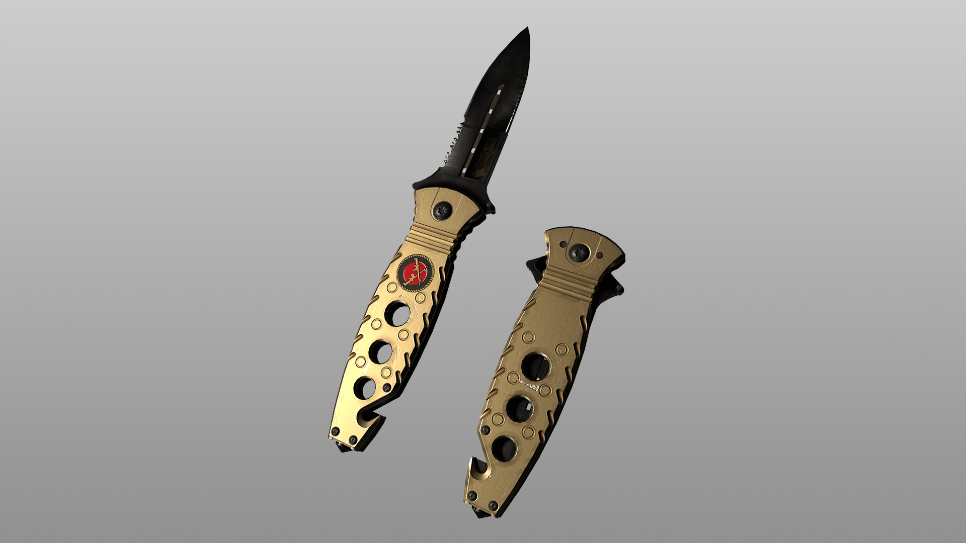 The sheen of the metal, the emblems on the handle, and all of the divots in the form of it was a great exercise in balancing edits in the mesh along with normal maps to create that illusion.